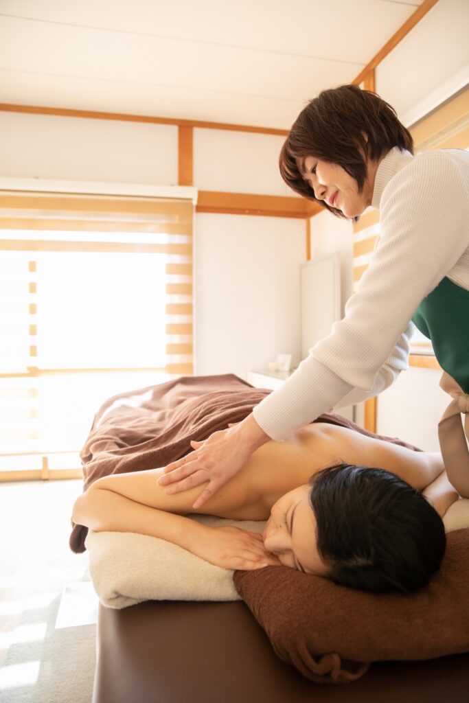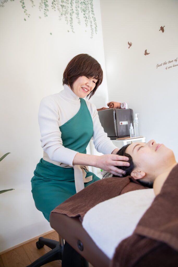 今回は施術風景も撮影できるように、女性のモデルさんをご用意しています。