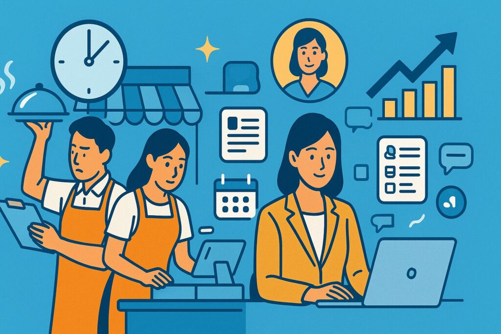 多くの店舗ビジネスでは、1〜3店舗以下のオーナー様は現場でのプレイヤーとしての業務に多くの時間を割いています。